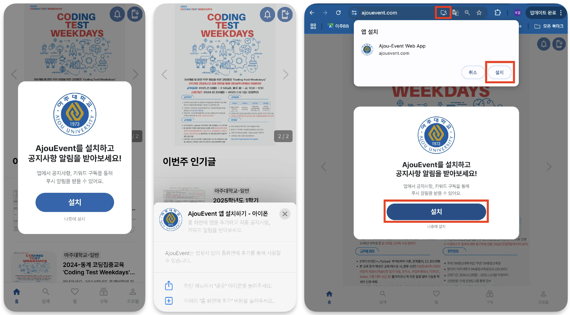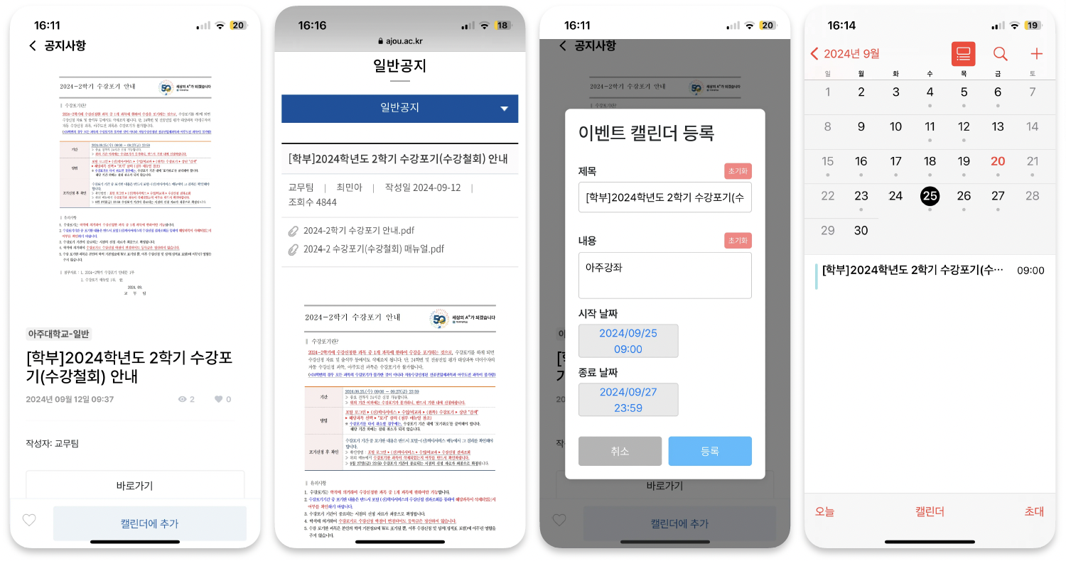 아주대학교 이벤트 알림 웹앱