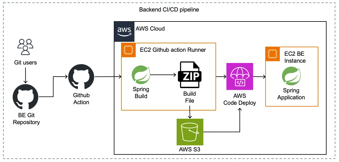 VPC와 서브넷 구축, 백엔드 CI/CD 파이프라인 구성은 영준이 형과 함께했다. 서비스로 아키텍처까지 그려줬는데 너무 마음에 든다.