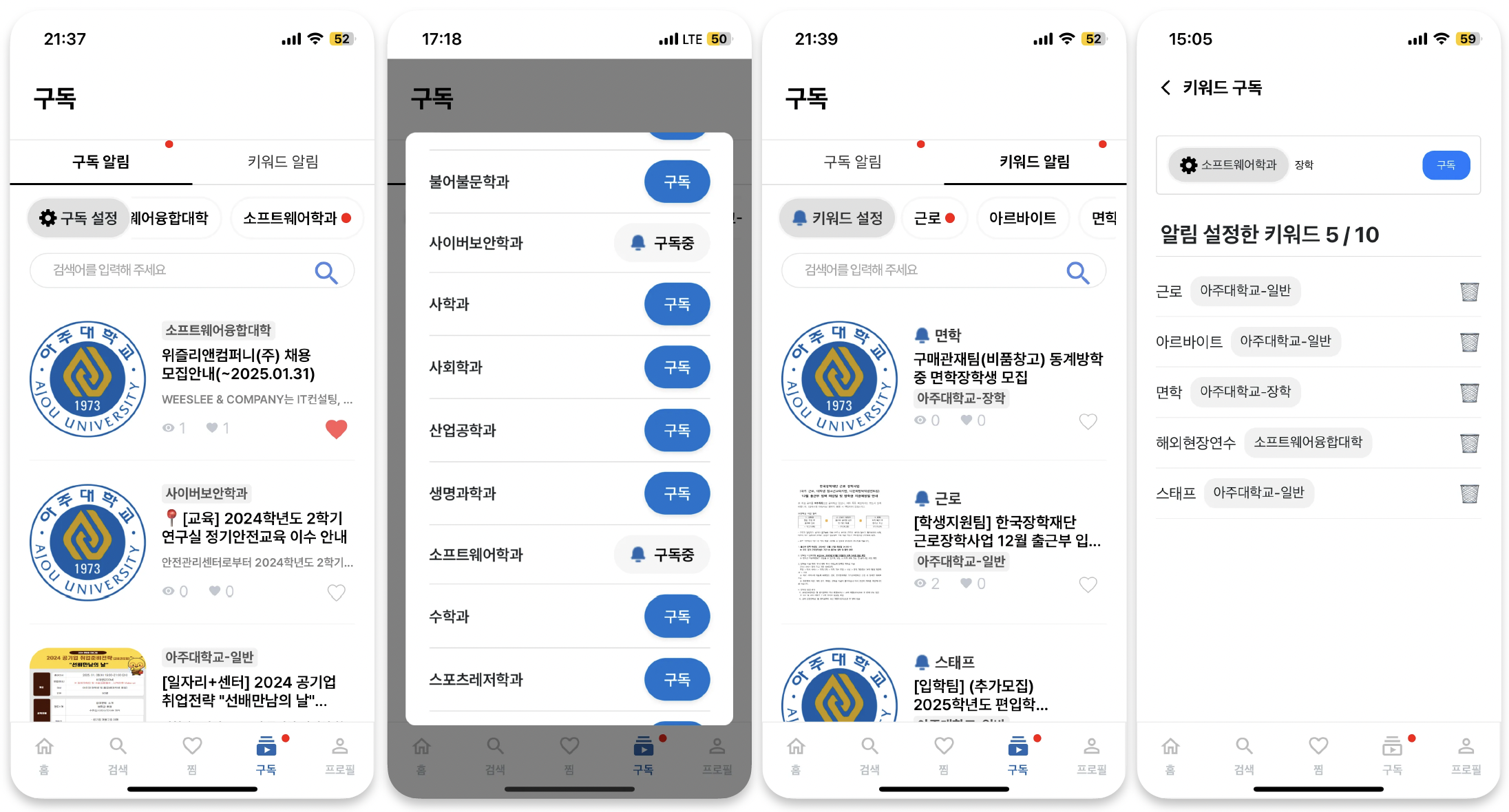 아주대학교 공지사항을 유튜브처럼 구독할 수 있는 서비스인데요,
